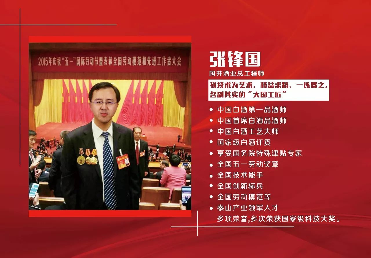 從1989年至今已整整28年。28年來(lái),張鋒國(guó)一直秉承嚴(yán)肅認(rèn)真的態(tài)度來(lái)完成自己的使命,作為中國(guó)第一品酒師、享受?chē)?guó)務(wù)院特殊津貼專(zhuān)家、中國(guó)白酒工藝大師、全國(guó)技術(shù)能手、國(guó)家級(jí)技能大師、國(guó)家級(jí)白酒評(píng)委、全國(guó)五一勞動(dòng)獎(jiǎng)?wù)芦@得者,張鋒國(guó)幾乎獲得了全國(guó)白酒技術(shù)層面的所有獎(jiǎng)項(xiàng)和成就,但他卻依舊為人低調(diào),堅(jiān)守工匠精神,視技術(shù)為藝術(shù),精益求精,一以貫之,是名副其實(shí)的“大國(guó)工匠”。